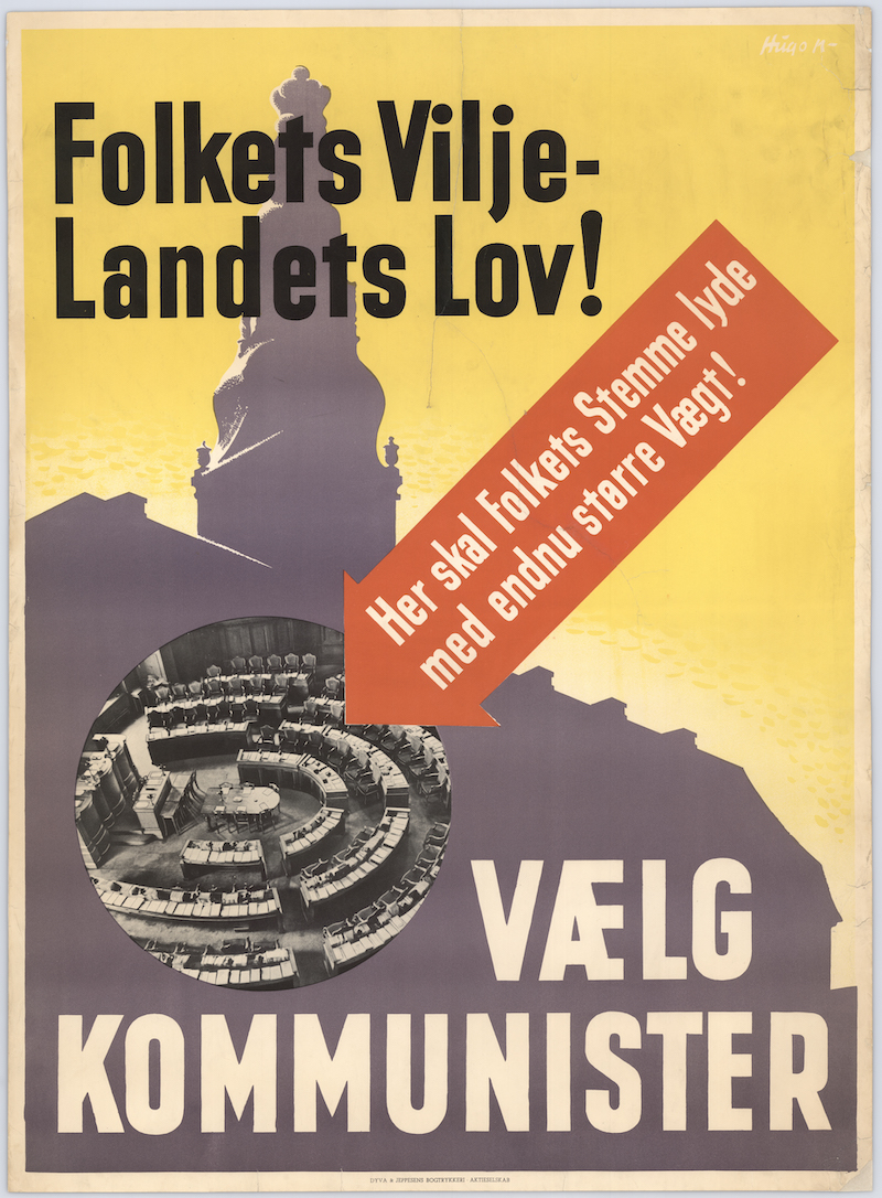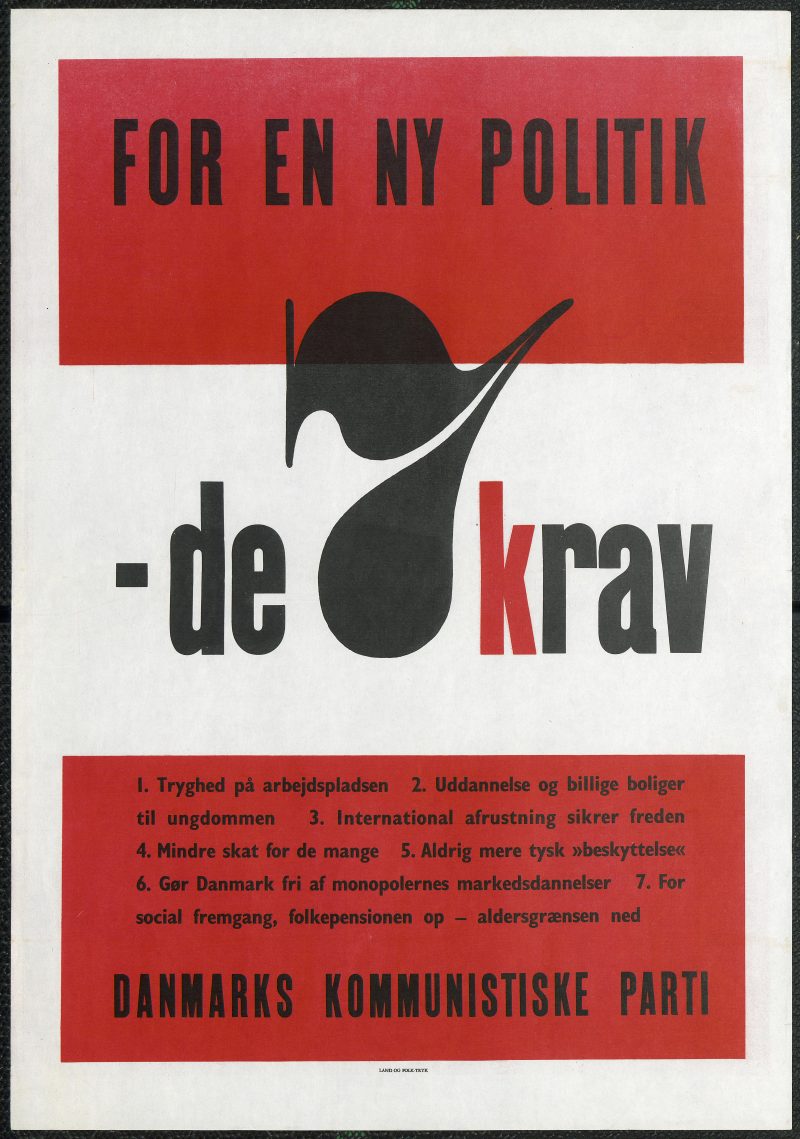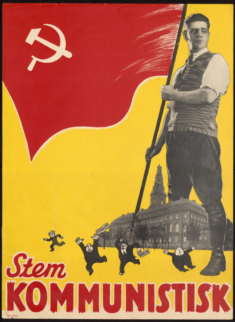 UDLØBET: DKP 100 ÅR Hjem // Det sker // Udstillinger // Tidligere udstillinger // UDLØBET: DKP 100 ÅR Menu Plakatudstilling i anledning af 100-året for stiftelsen af Danmarks Kommunistiske Parti findes på balkonen i festsalen frem til 22. marts 2020. OBS – På visse dage kan festsalen være lukket på grund af arrangementer, og der vil ikke være adgang til denne udstilling. Du kan evt ringe ind på forhånd for at sikre dig, at festsalen er åben, hvis du kommer for at se denne udstilling. DKP – et lille parti med en stor betydning Partiet blev stiftet for 100 år siden d. 9. november 1919 i kølvandet på Første Verdenskrig og den russiske revolution. Kommunisterne var i opposition til den bestående samfundsorden, og særligt Socialdemokratiet, datidens eneste arbejderparti. Den store betydning fik partiet ikke gennem sit virke i Folketinget, men gennem sin eksistens som oppositionsparti og som repræsentant for et andet samfundssyn. Ifølge DKP skulle magten være i folkets og arbejderklassens hænder, ikke i lommen på de pengestærke og deres lakajer i regeringskontorerne. Og vejen til forandring skulle gå gennem revolution, ikke reform. DKPs aftryk Partiet fik ikke stor gennemslagskraft, og nød kun sjældent bred opbakning. Men DKP satte alligevel aftryk; gennem dets faglige arbejde, i modstandskampen under Anden Verdenskrig og i 1970ernes Vietnambevægelse og kampen mod EF. Kommunisterne var kontroversielle, og blev med skiftende styrke opfattet som en trussel. Partiets støttede ukritisk Sovjetunionen, og blev samtidig støttet økonomisk derfra helt indtil opløsningen af Sovjet DKP 100 ÅR kan ses på Balkonen fra d. 10. november 2019 – 22. marts 2020. Se et udvalg af plakaterne og læs om deres historie Klik på billedet nedenfor, og du kan bladre igennem galleriet. Billede 2Billede 3Billede 4Billede 5Billede 6Billede 7 Se alle aktuelle udstillinger her